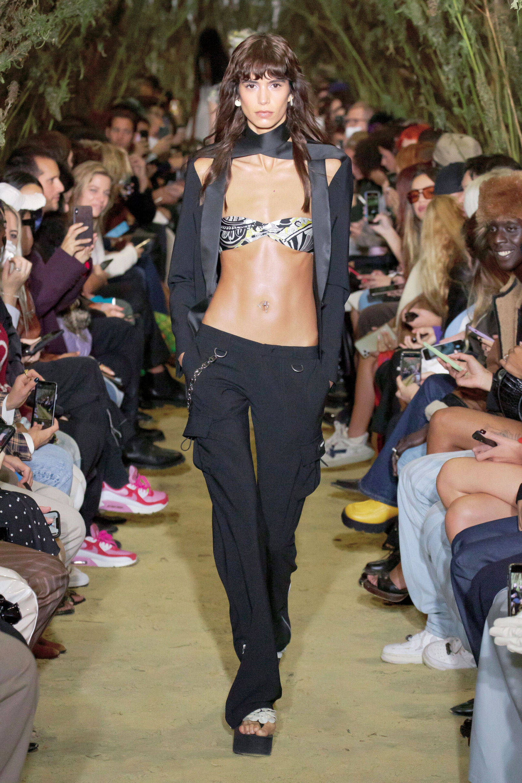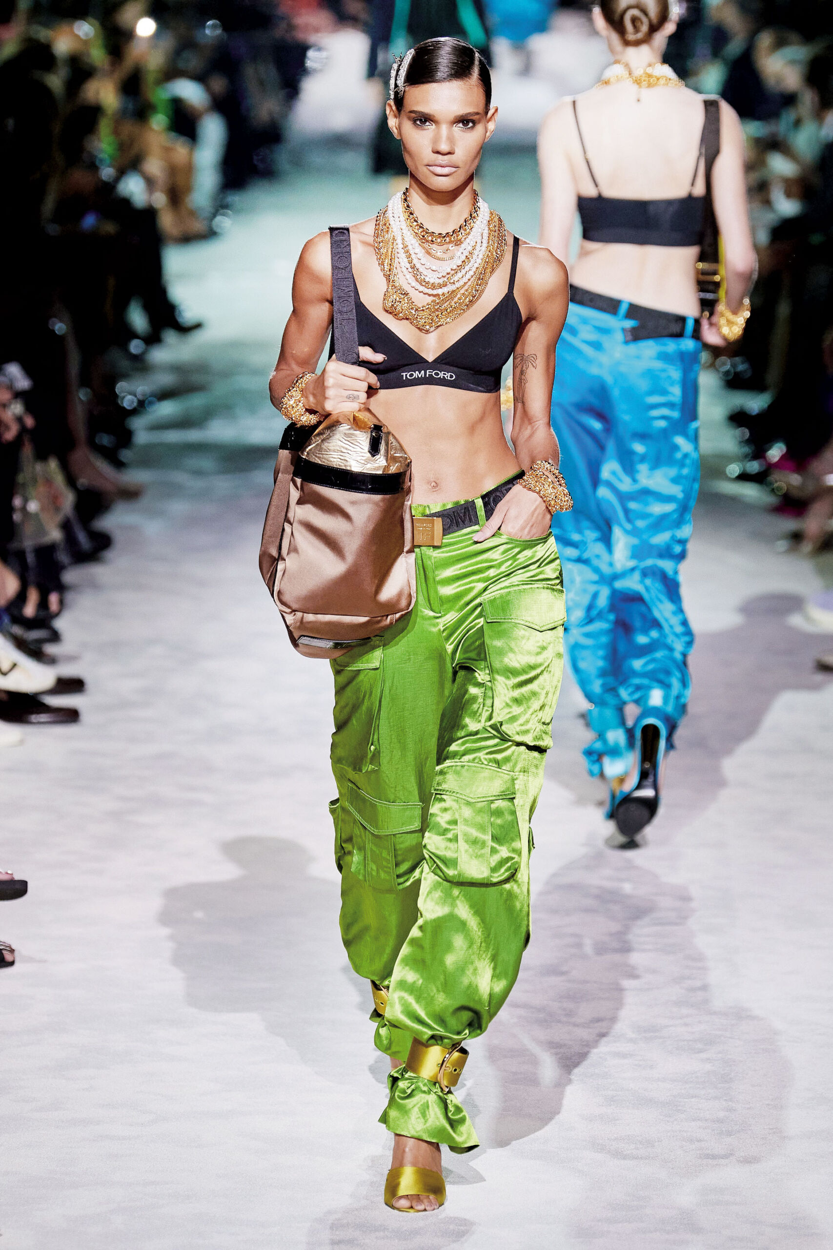 Cut-out trendinin yükselişiyle beklenmedik bölgelerde beliren dekolteler, bu sezon out! Farklı form ve desendeki crop top ve büstiyerler ile karın kaslarınızı özgürce sergileyebilir, 2000’ler esintisi taşıyan düşük bel pantolonlarla iddianızı arttırabilirsiniz.