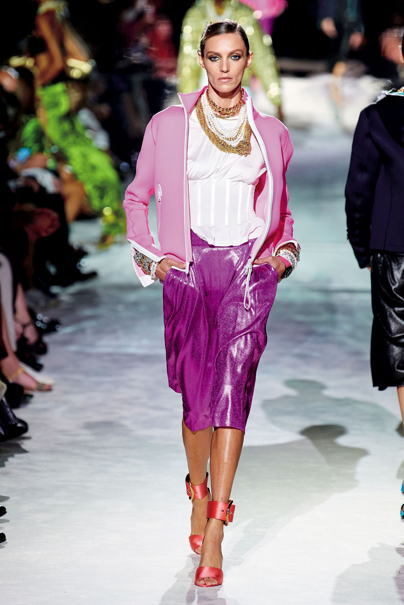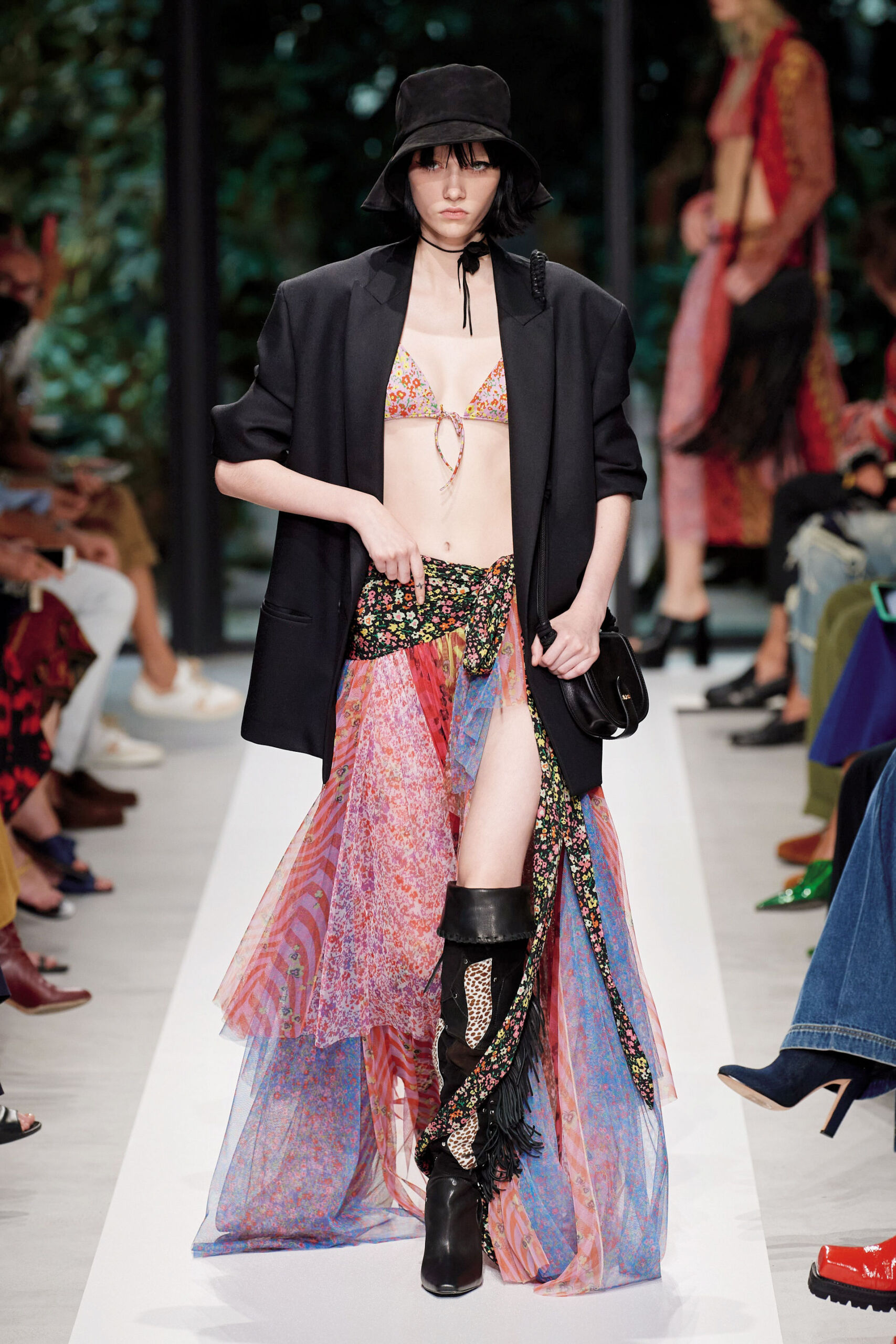 Yaz mevsiminin vazgeçilmezi etekler, daha da kısalamaz dediğiniz anda sizi şaşırtmayı başarıyor. Özellikle Miu Miu’nun kemerli düşük bel eteği, 2000’ler göndermesinde bulunarak sezonun en çok konuşulan parçası oluyor. Bacak dekoltesi sevenler için sezon resmen açıldı!