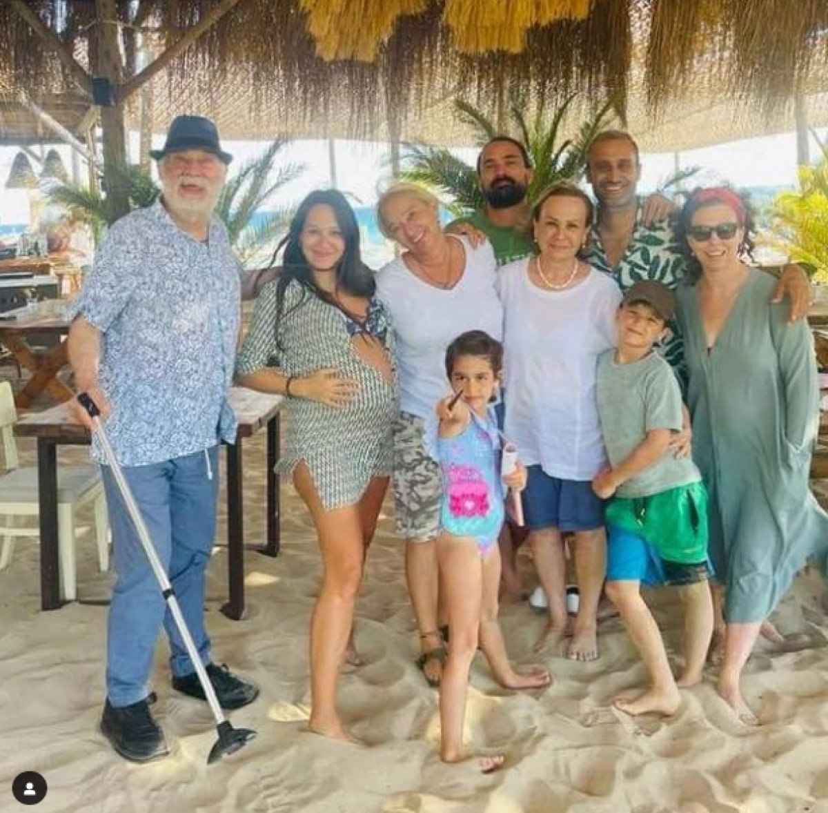Kız bebek bekleyen Özay serin suların tadını çıkarırken, eşi Barış Arduç plajda arkadaşlarıyla sohbet etti.